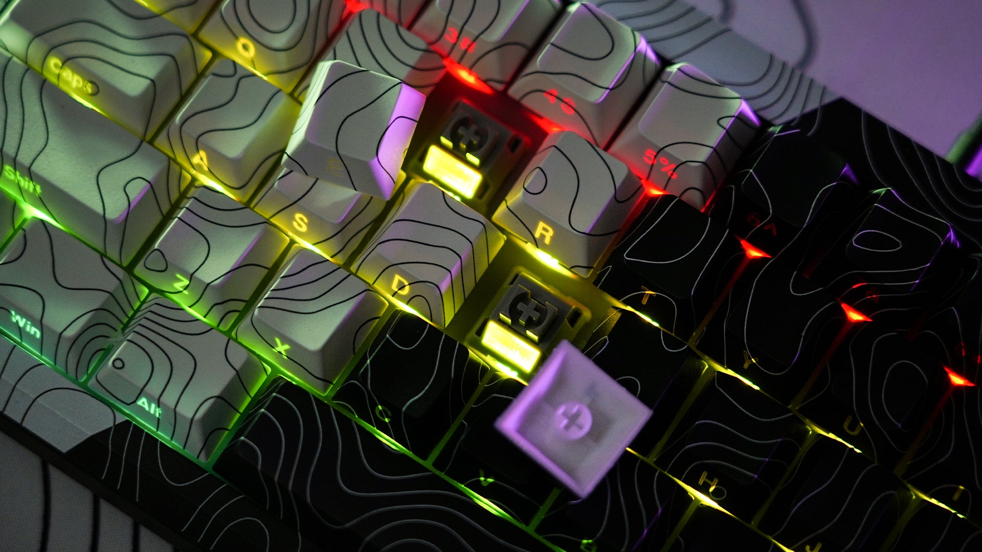 A 60% Compact and Functional Gaming Keyboard with Sleek Black n' White Topographic Theme Design