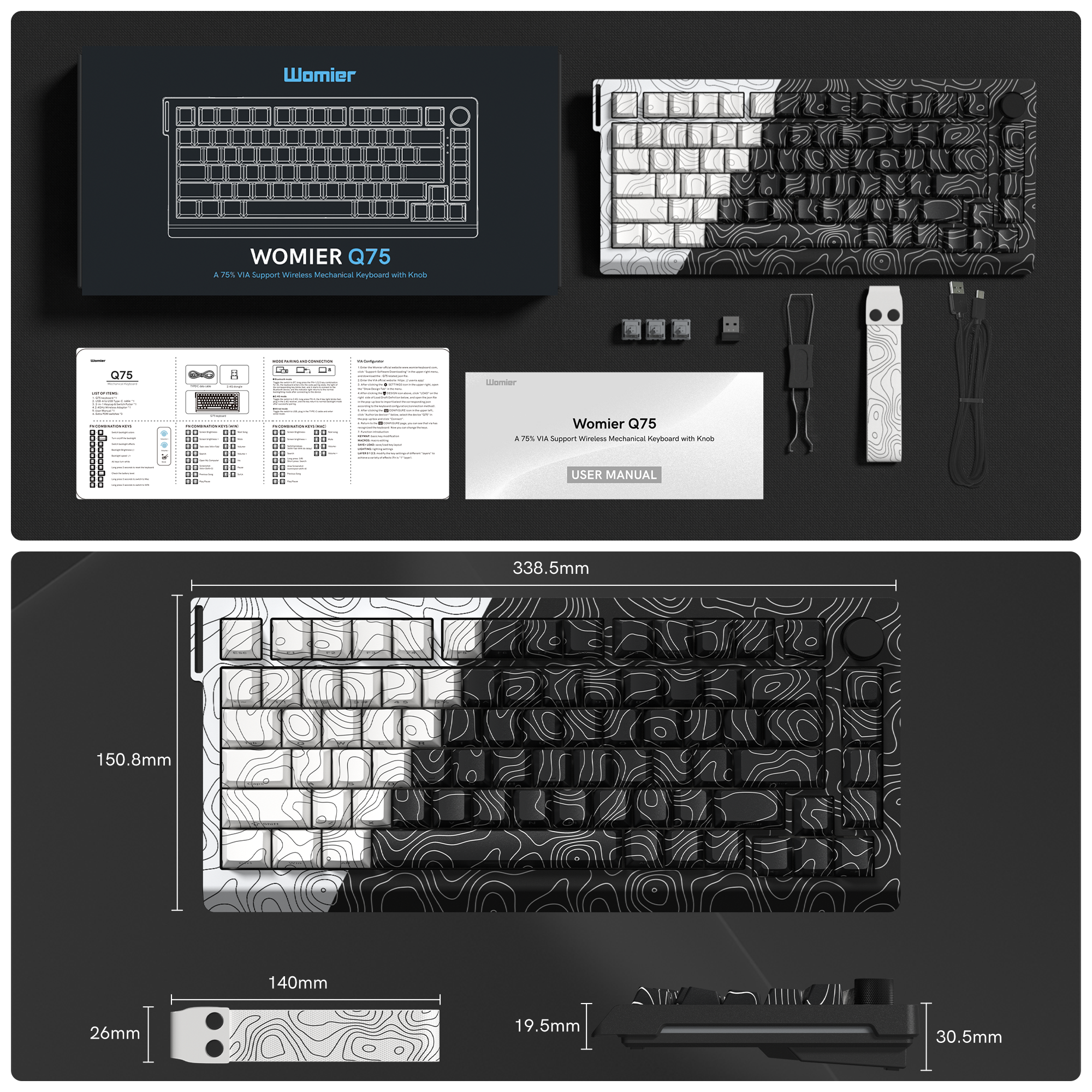 Womier Q75 75% VIA Support Gasket Mounted Wireless Keyboard with Knob