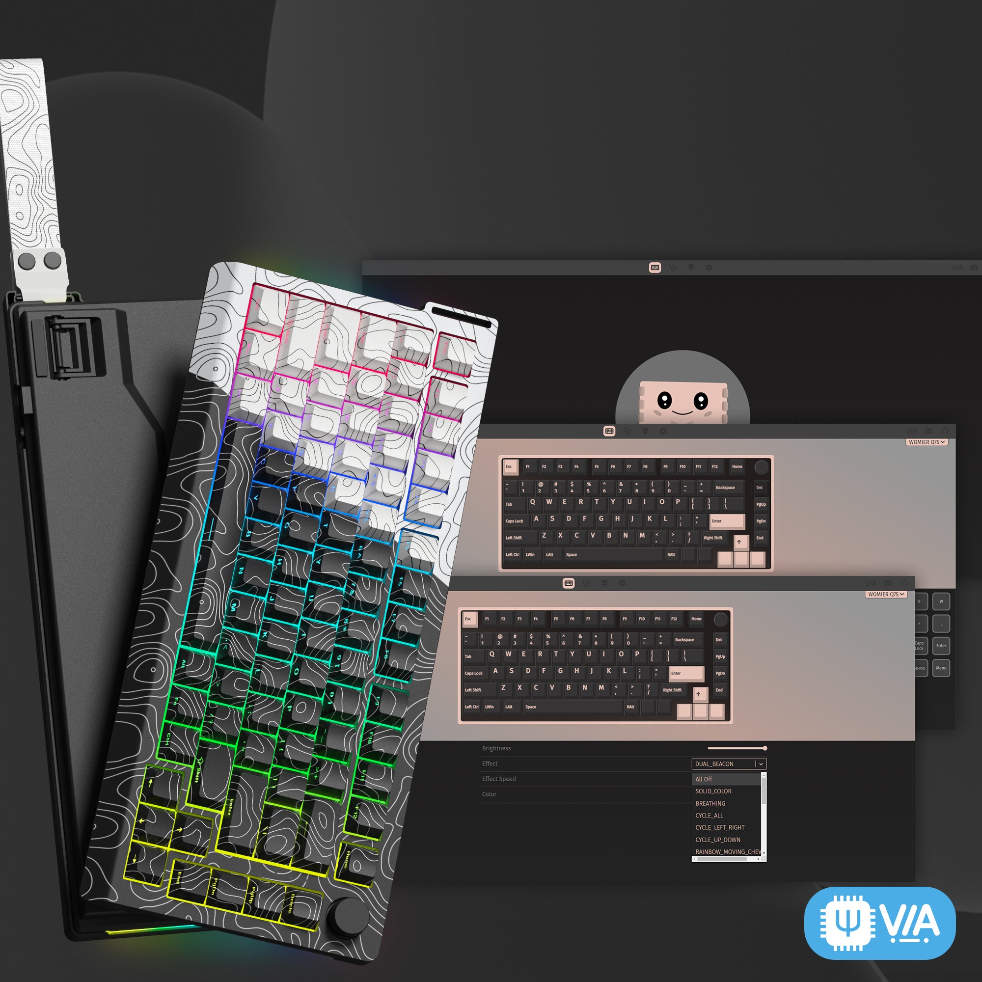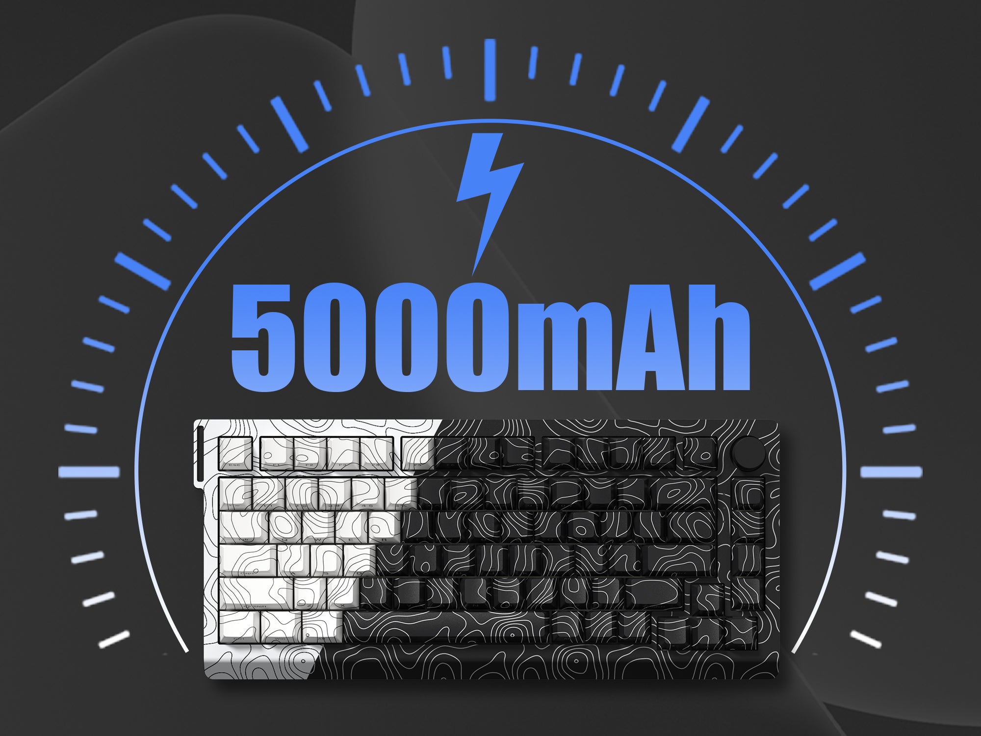 A 75% Functional and Customizable Keyboard with Sleek Black n' White Topographic Theme Design