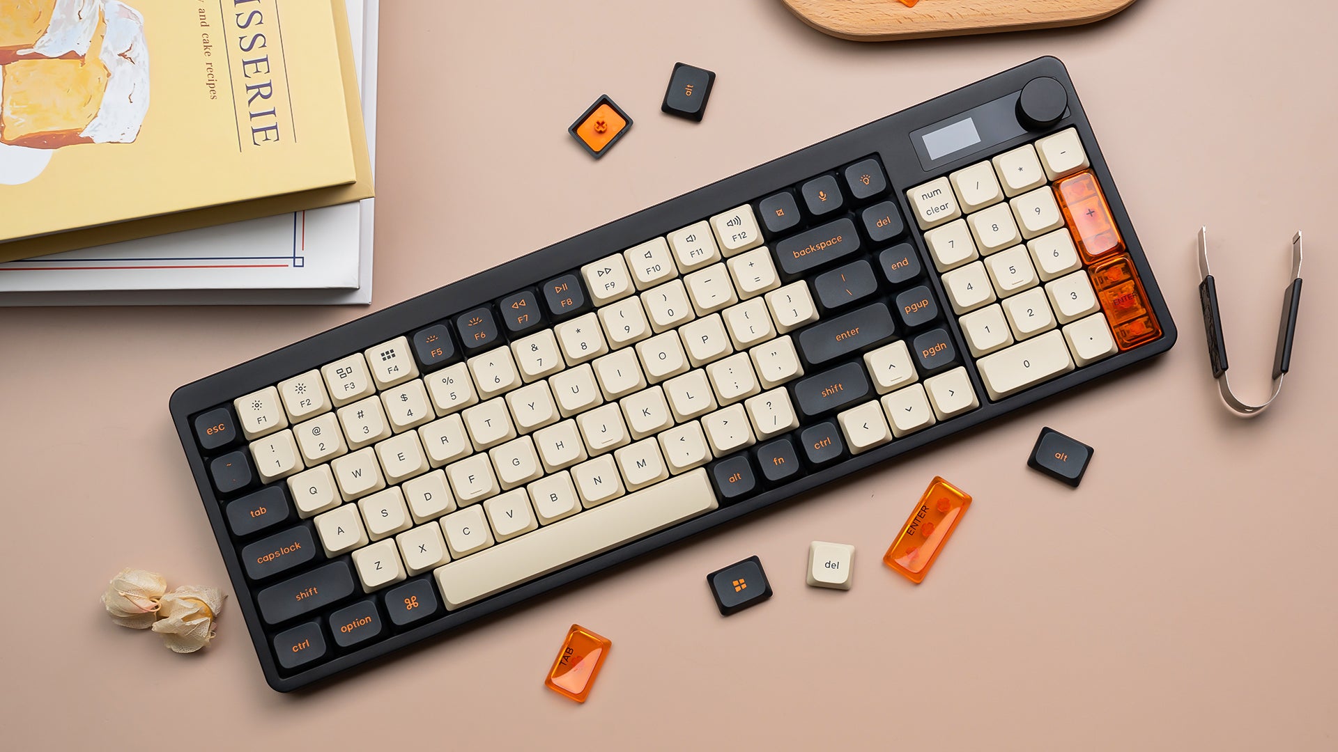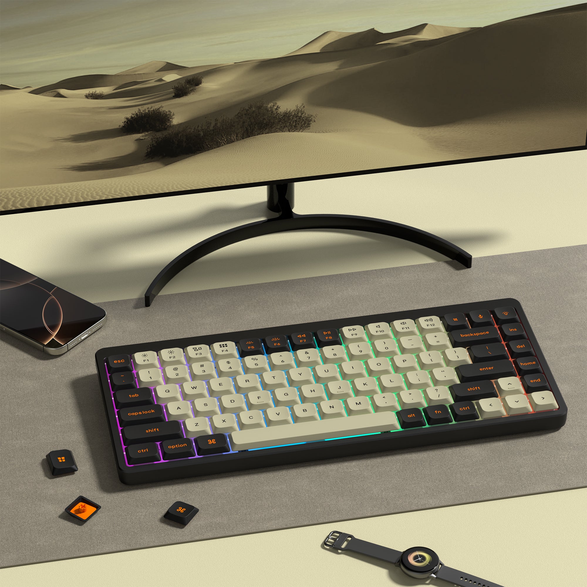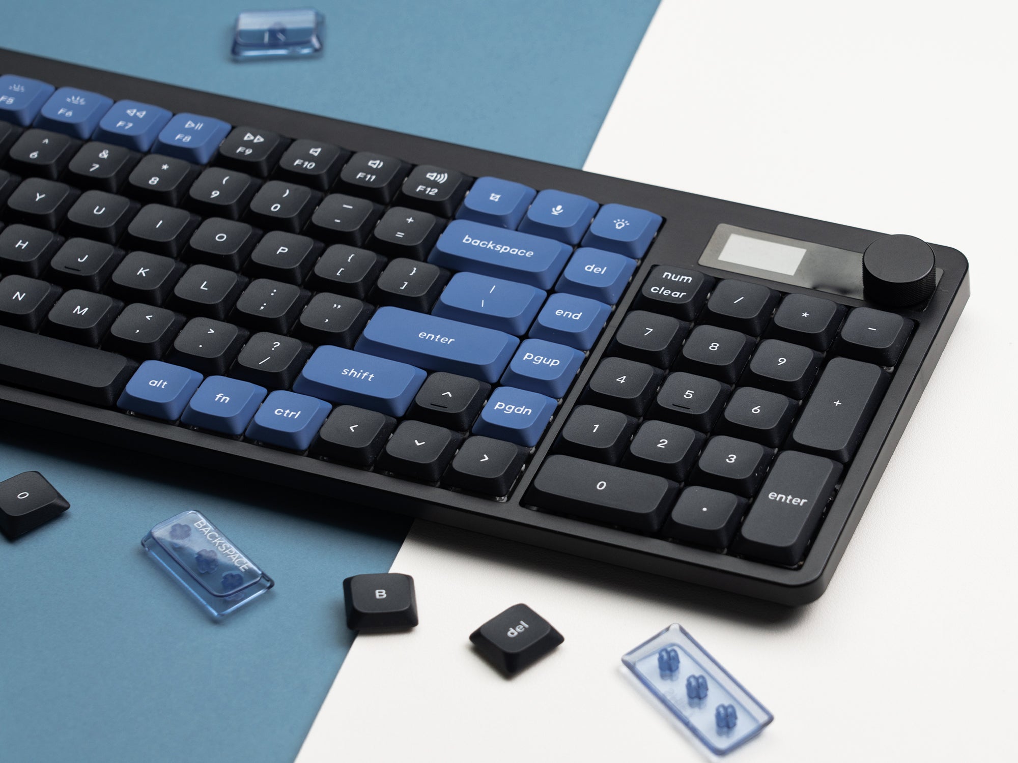 Made of premium PBT material with a double-shot molding process, these keycaps are resistant to wear and fading, ensuring long-lasting durability. To add a touch of personality, the set includes color contrast accent keys made of clear PC material, providing the perfect finishing touch to your keyboard!
