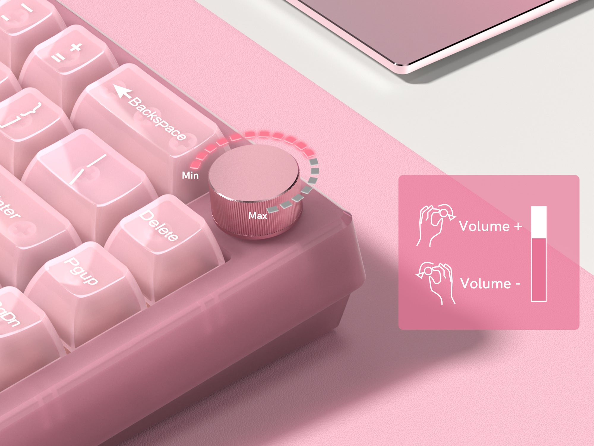 The upgraded VK66 Pro keeps everything users loved about the original VK66, and adds more power to the palm of your hands. Now with a convenient volume knob, full VIA support, improved sound dampening, and brand-new Pink Topographic theme, this 65% keyboard brings both aesthetics and control to your daily workflow.