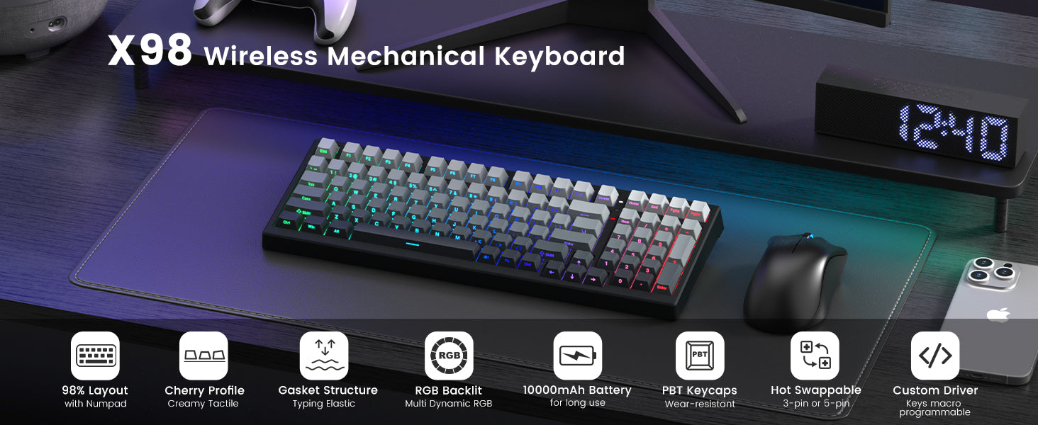 Womier X98 Wireless Mechanical Keyboard, RGB Gaming Keyboard