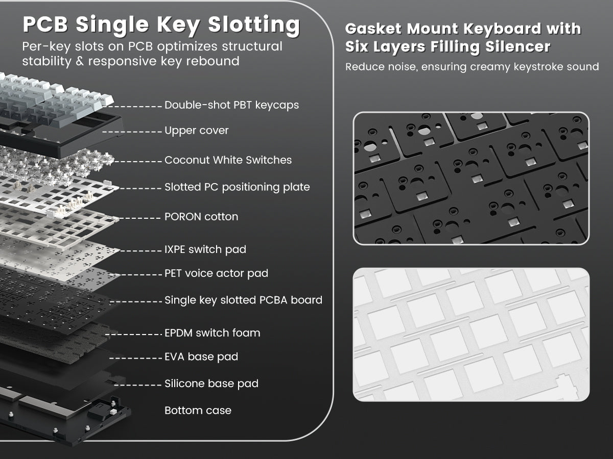 - Advanced Gasket Structure & PCB Single Key Slotting
