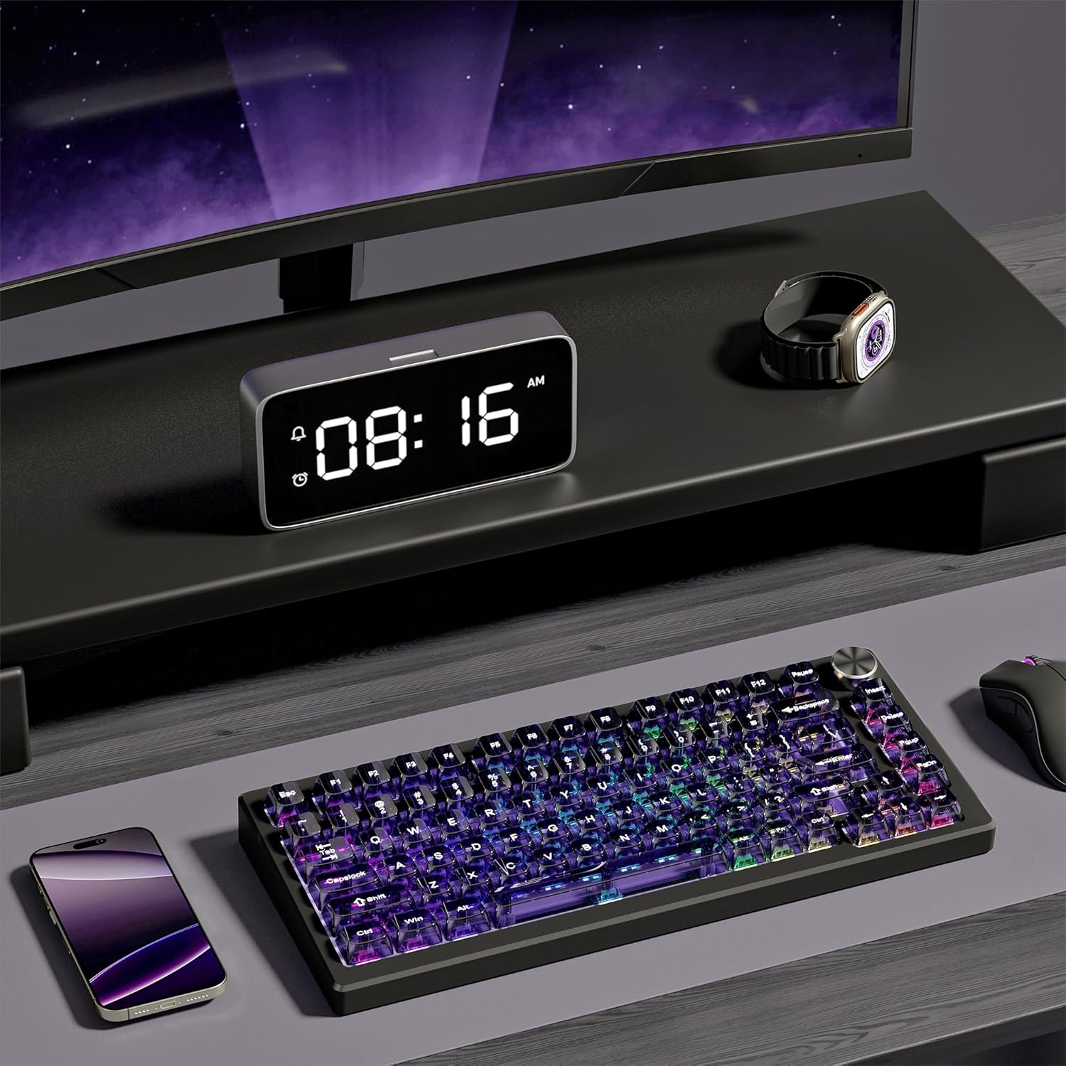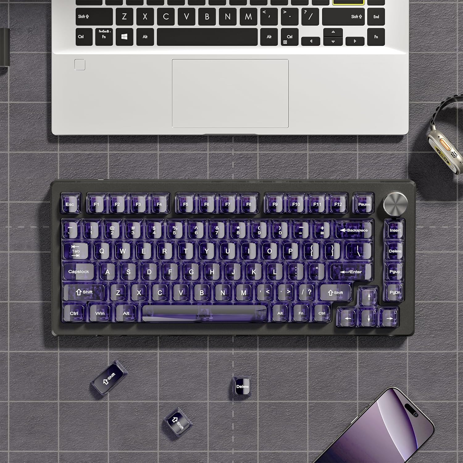 - 【Shine-Through Purple Keycaps】Bring your keyboard to life with translucent purple keycaps that allow backlighting to glow clearly, combining functionality with a minimalist, modern look.