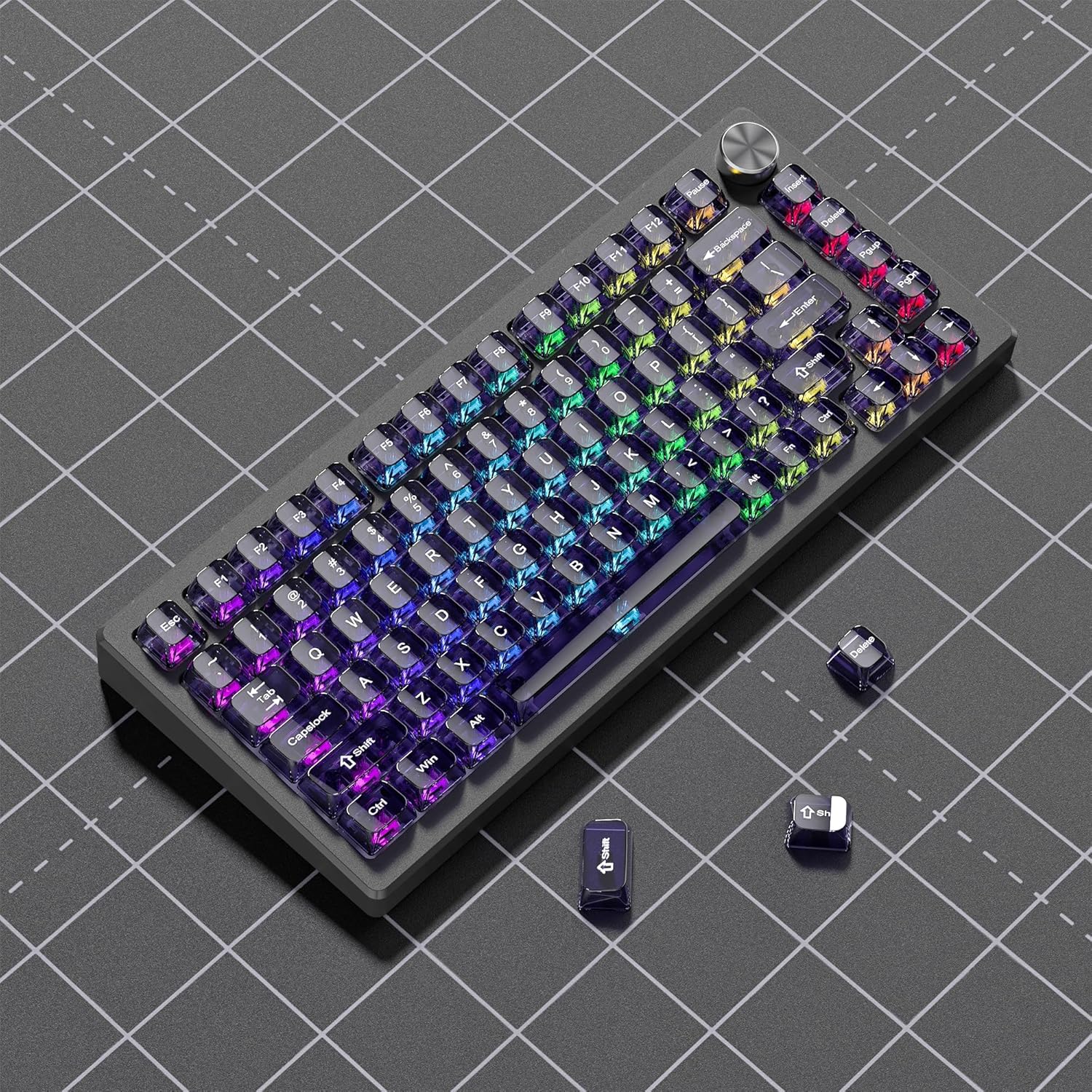 115 Purple Clear keycaps, MDA Transparent Profile Keyboard Key Cap for Mx Switches Mechanical Keyboard, Shine Through Jelly keycap Set (100%, 75%, 65%, 60% Fit All)