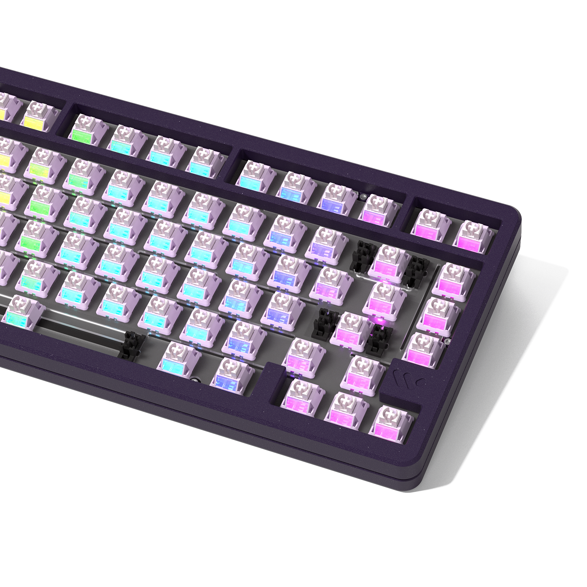 Enjoy soft and dynamic under-key lighting that shines bright with 18 preloaded immersive lighting effects on this 75% aluminum mechanical keyboard. They can be easily changed by your mood with shortcuts. Or customize your own lighting look and animation effects with programmable RGB LEDs using the VIA Configurator.