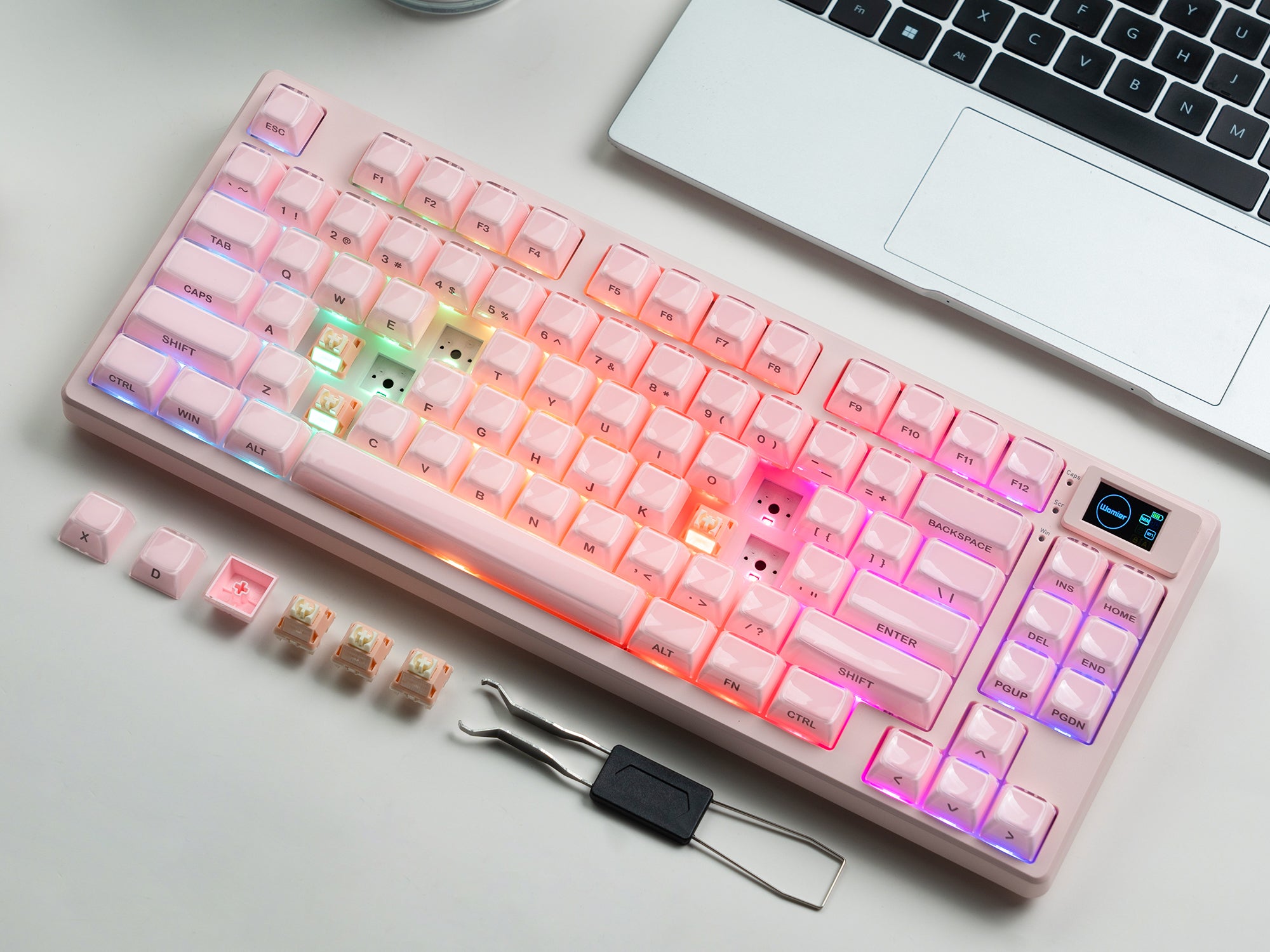 The SK80 Pro stands out with its interactive LCD screen, which displays operating system, GIF animations, volume, and backlight effects—all at a glance. Paired with shortcut keys, you can effortlessly adjust essential settings, switch modes, and fine-tune your keyboard without interrupting your workflow or gameplay.