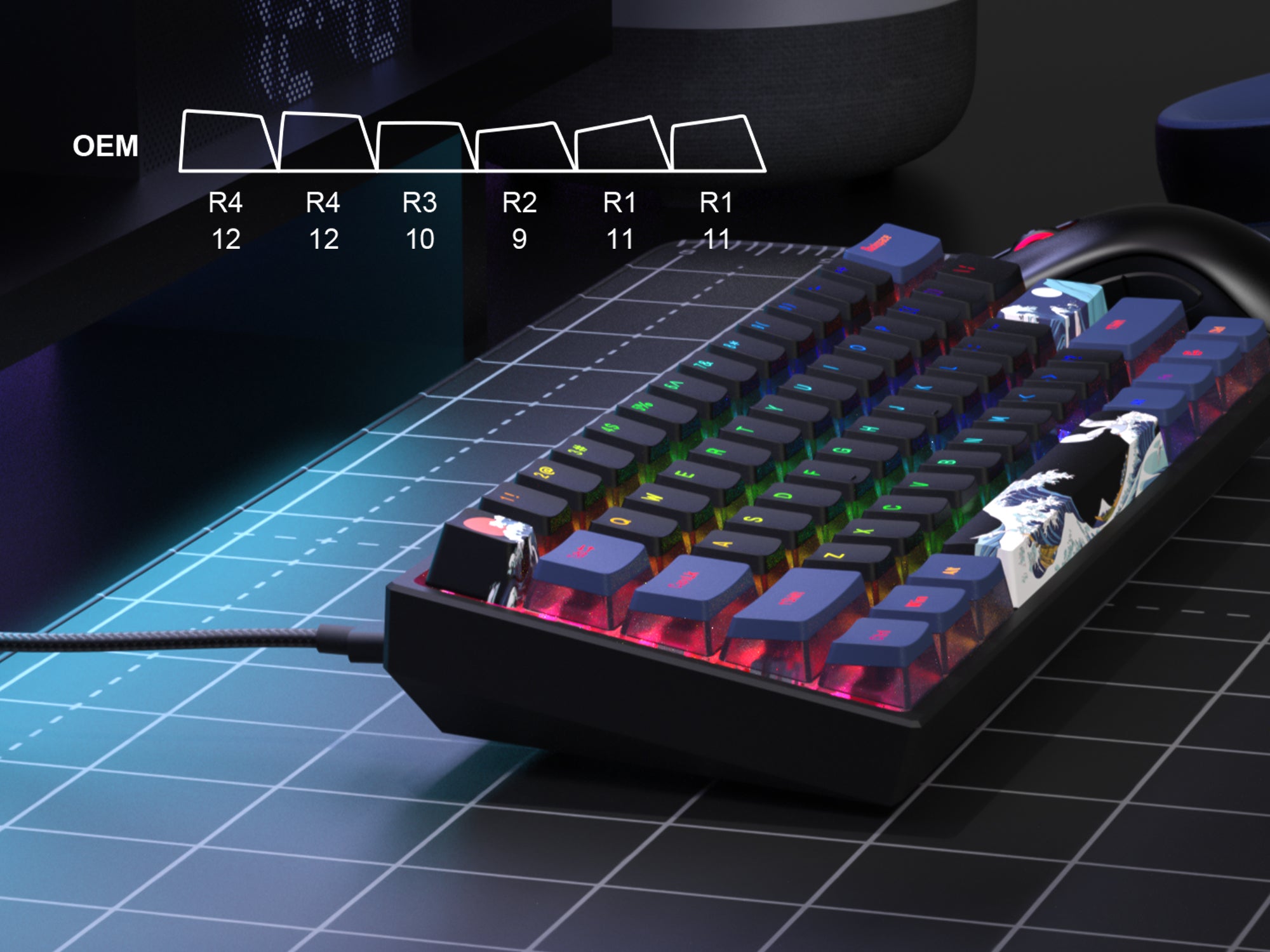 The pudding translucent keycaps allow RGB lighting to shine through, creating a vibrant glow that enhances any setup. The OEM profile offers a comfortable, sculpted typing experience, perfect for long sessions.