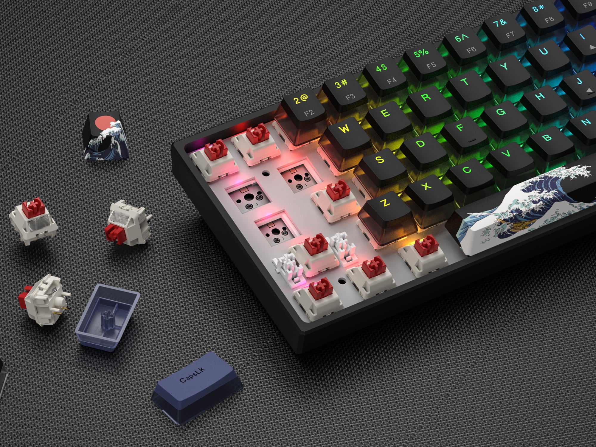 You can effortlessly switch out your mechanical key switches without the need for soldering, offering you endless possibilities to fine-tune your typing experience.Whether you prefer smooth, linear keystrokes, satisfying tactile feedback, or clicky sound, you can instantly swap to the switch that suits you best.