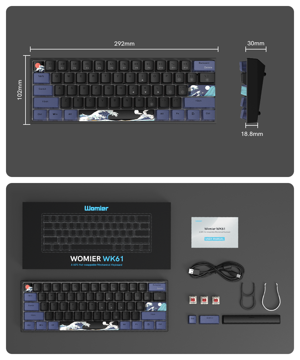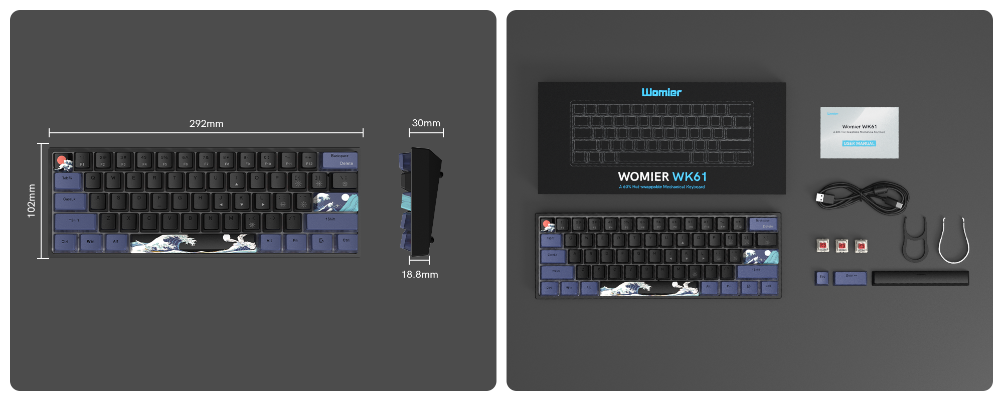 Womier WK61 V2 60% Hot-Swappable RGB Mechanical Wired Gaming Keyboard (5 Colors)
